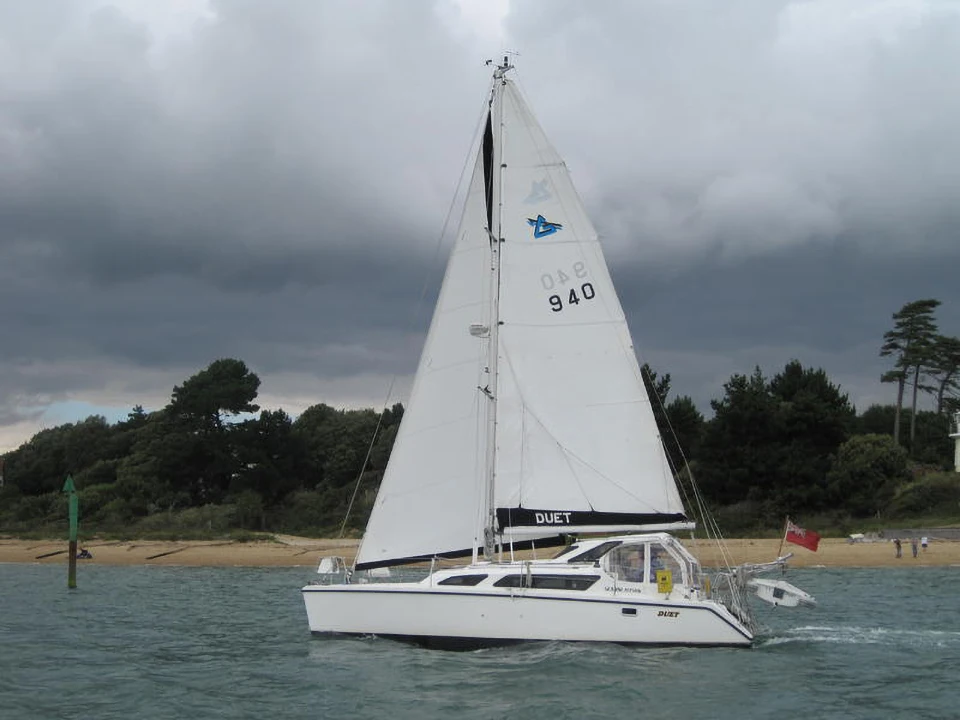 Катамаран очень хорошо идет под парусом, благодаря двум секторным швертам. Идеален для ВВП, поскольку малая осадка позволяет подходить к любому берегу и ходить по мелким водоемам.