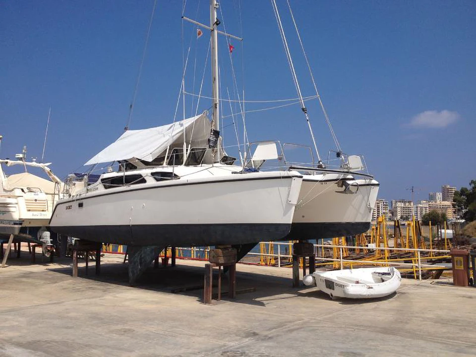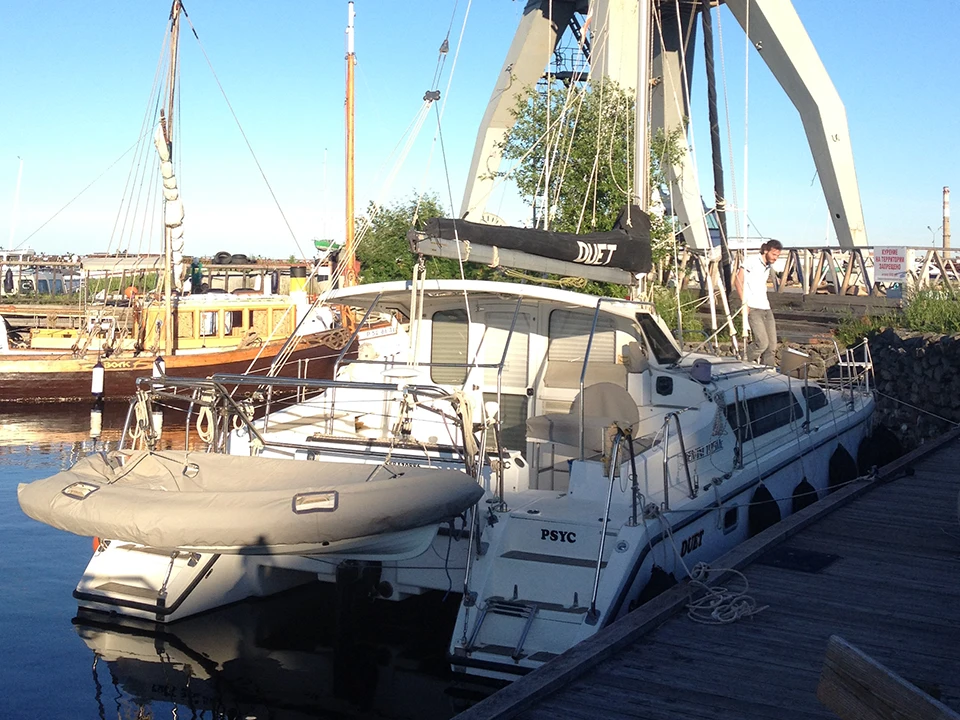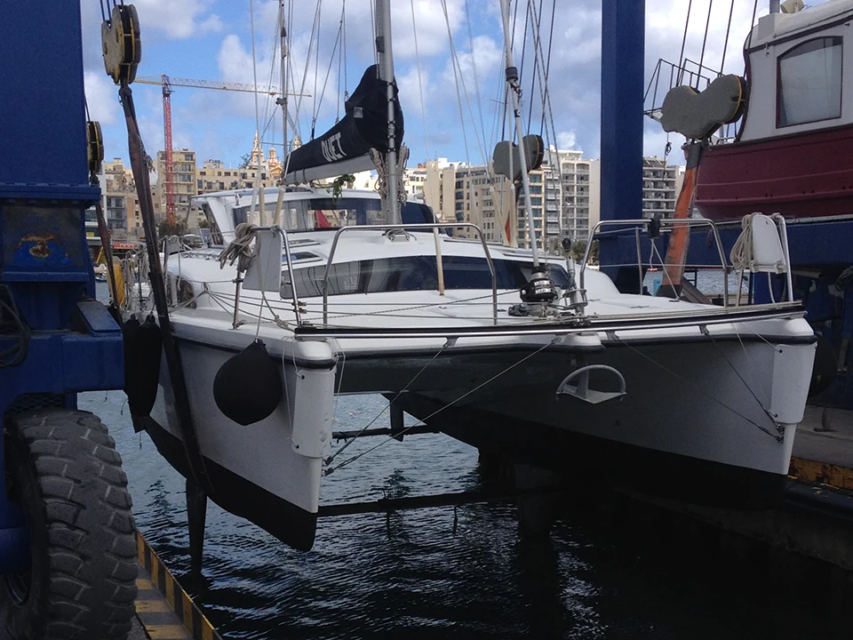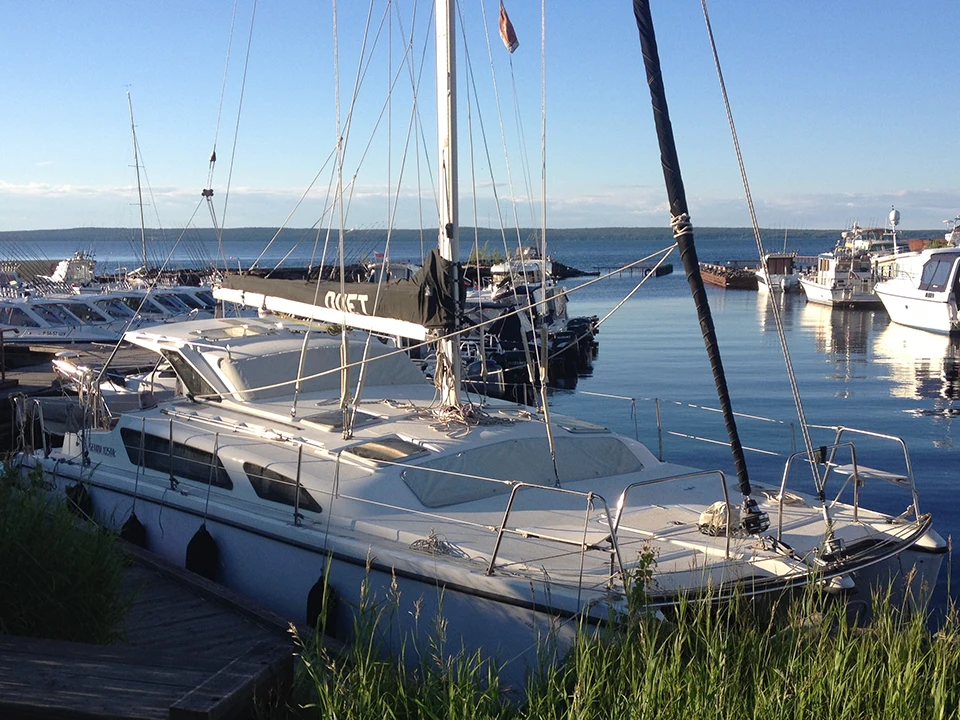 Катамаран был в частном владении, состояние очень хорошее. Использовался мало, только в период отпуска. Зимнее хранение в ангаре.