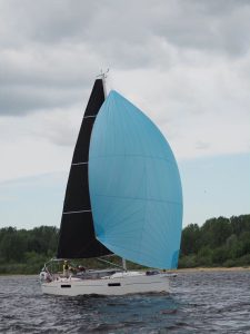 - – бегучий такелаж: грота-фал, стаксель-фал, топенант, спинакер-фал, стаксель-шкоты, таль ахтерштага, фал/контрафал пера руля, 2 рифа грота