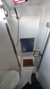 Интерьер – морская фанера ламинированная HPL с премиальной текстурой дерева. Планировка с тремя каютами, камбузом и закрытым гальюном.